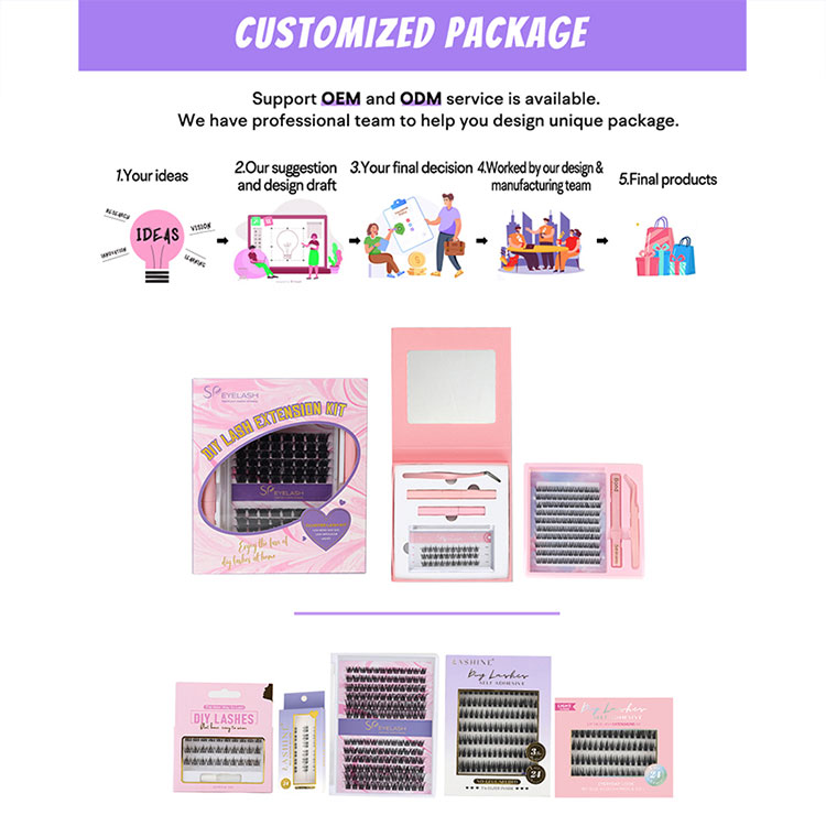 Cluster Lash klasikoa ez ezik, erlazionatutako hainbat produktu ere eskaintzen ditugu. Press on Lash-ek berehalako edertasun-konponketa eskaintzen die presaka dutenei, eta DIY Lash Extensions eta DIY Lash Kit-ek edertasun zaleei beren sormena arakatzeko ahalmena ematen diete. Handizkakoan interesa duten enpresentzat, SPEYELASH betile faltsuen hornitzaile bakarra da, eskaera handiak betetzeko gai den aukera pertsonalizatuekin merkatuko eskakizun zehatzei erantzuteko.