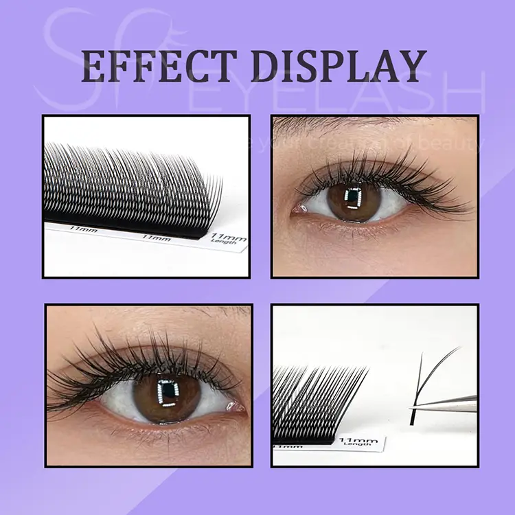 Begi dotorearen makillajea sortze erosoa, YY Forma Lashas Flying-ek azeriaren begi forma bat hartzen du, kurba naturalaren diseinu naturala barruan eta kanpoan, hasiberrientzat "Fox begi" oso pozgarria da goranzko efektua. Berritzailea 11mm + 9mm luzera konbinazio mistoa, "hiru luzeko eta bi laborantza-sare laburrarekin konbinatuta, 2CM geruza desberdintasuneko diseinuarekin konbinatuta, efektu fluffy naturala sortzen du. Erro laua egokitzeko teknologia berezi batek betile naturalekin egokitzea hobetzen du,% 30 baino gehiago eramateko egonkortasuna areagotuz.